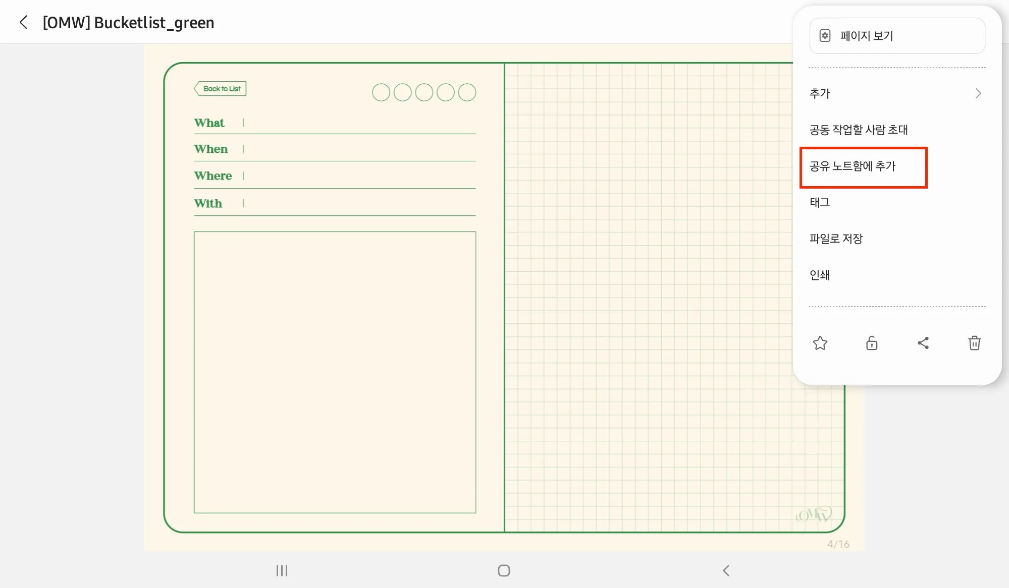 01. [옵션 더보기] 점 세개 클릭 → 공유 노트함에 추가
