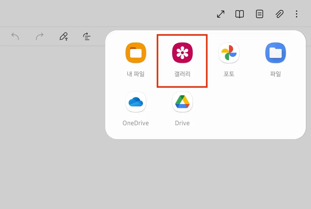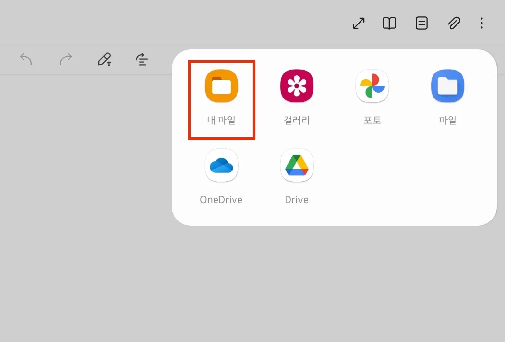 01. 삼성노트 오른쪽 상단에 [클립 아이콘] 클릭