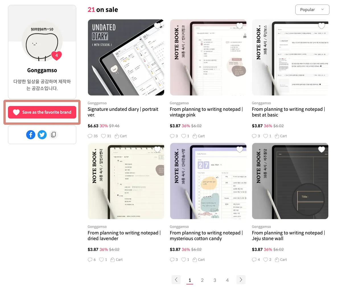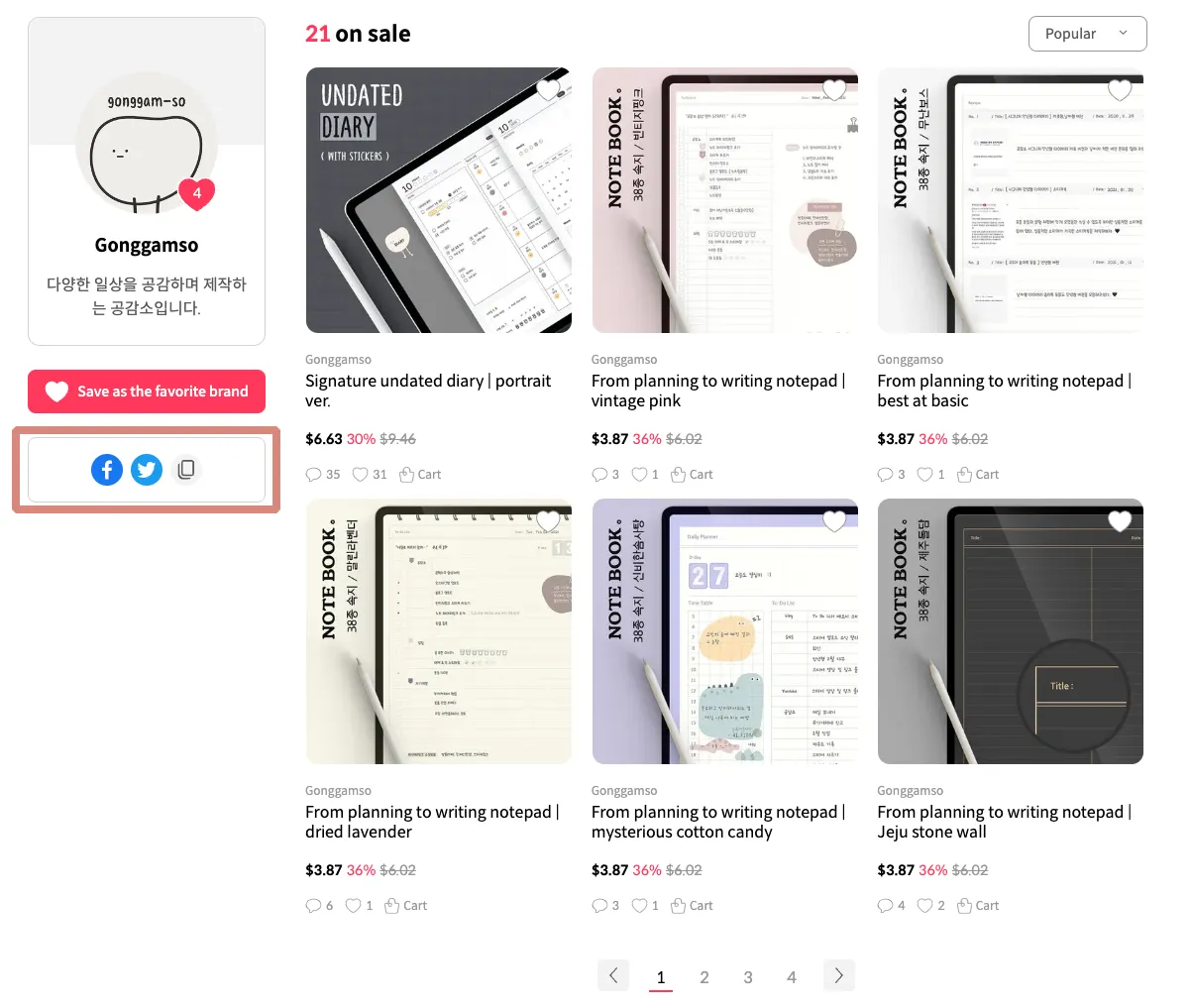 Share the brand page to your friends. Share the page through Facebook or Twitter. You can just copy the link, too!