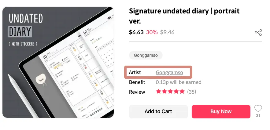 You like the artist? Save this artist as your favorite brand! Click [Save as the favorite brand].