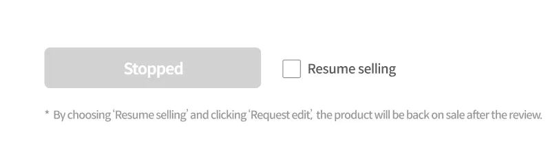 When requesting âResume sellingâ, the selling status will be changed to âProcessingâ.