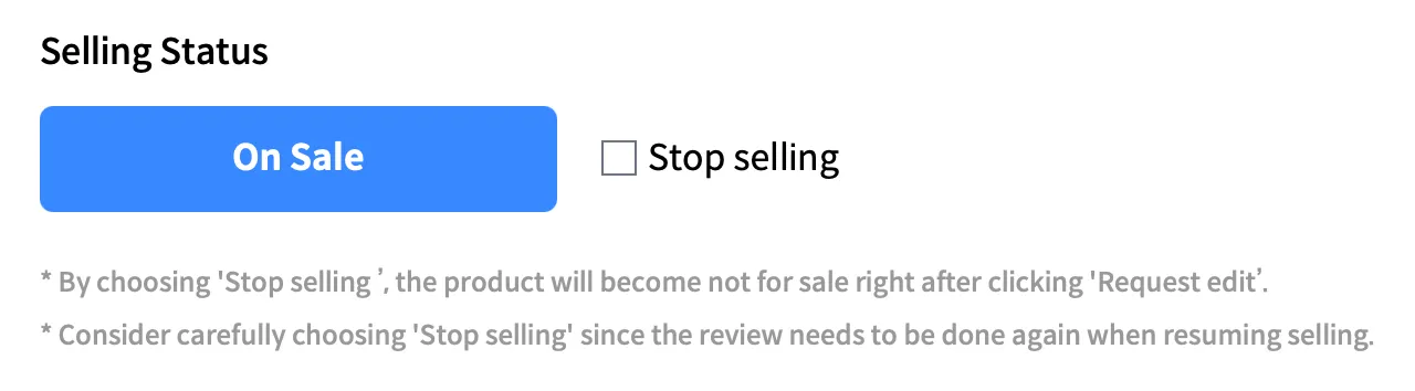 When the selling status is in âOn Saleâ, itâs available to use the âStop sellingâ feature.