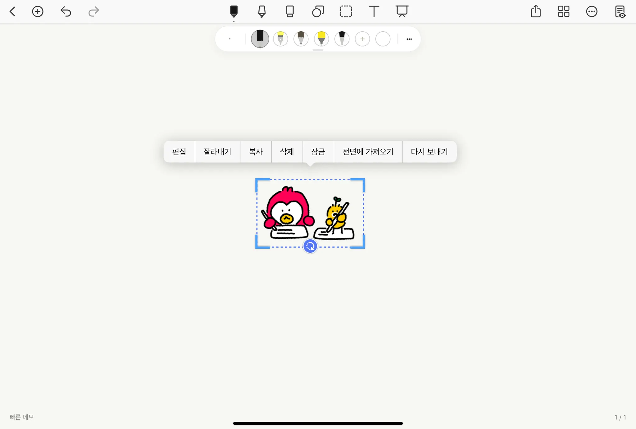 하단에서 [사각형], [지우개], [자유형] 툴을 활용해 스티커 모양대로 자른 후 [완료]를 클릭하세요.