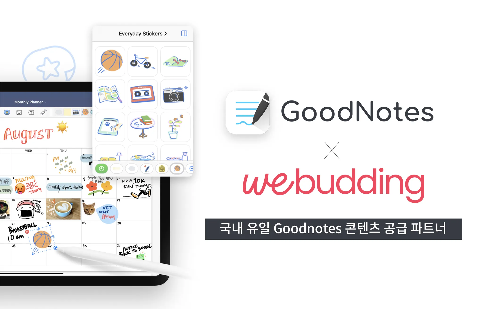 앱스토어 무료 앱 1위이자, 2022년 앱스토어 올해의 앱으로 선정된 Goodnotes 5와 위버딩이 콘텐츠 제휴 계약을 체결했습니다! 전 세계 Goodnotes 유저들은 앱 내에서 위버딩 작가님들의 콘텐츠를 찾아볼 수 있습니다.