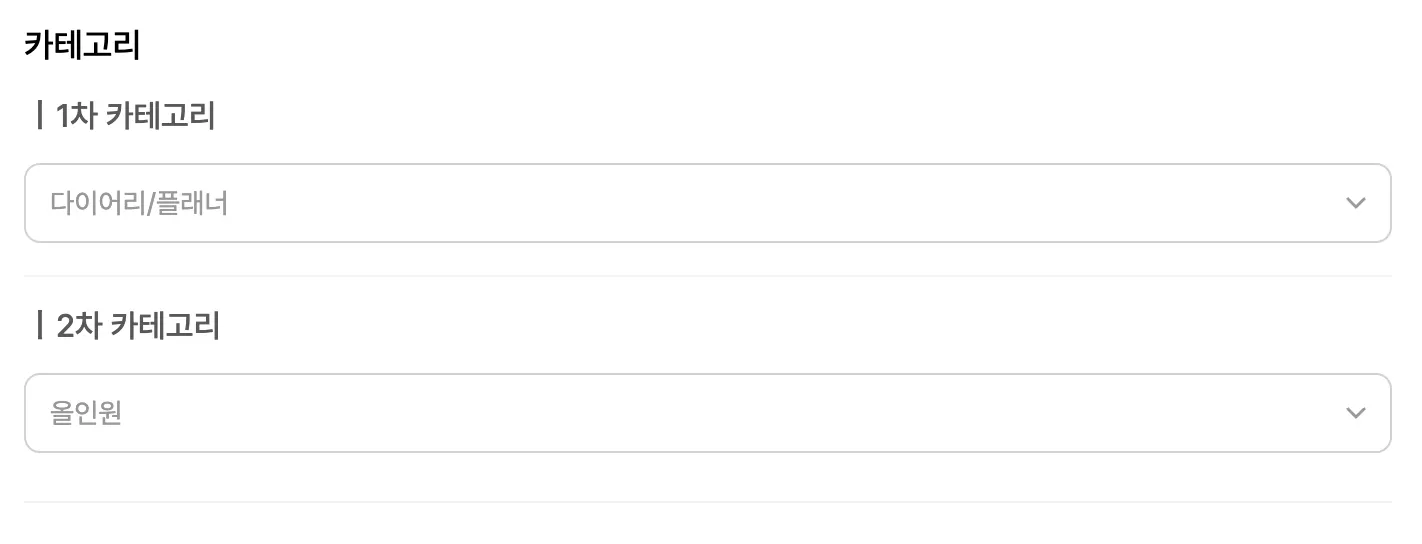 1차 카테고리 설정 결과에 따라 2차 카테고리가 이에 맞게 활성화됩니다.