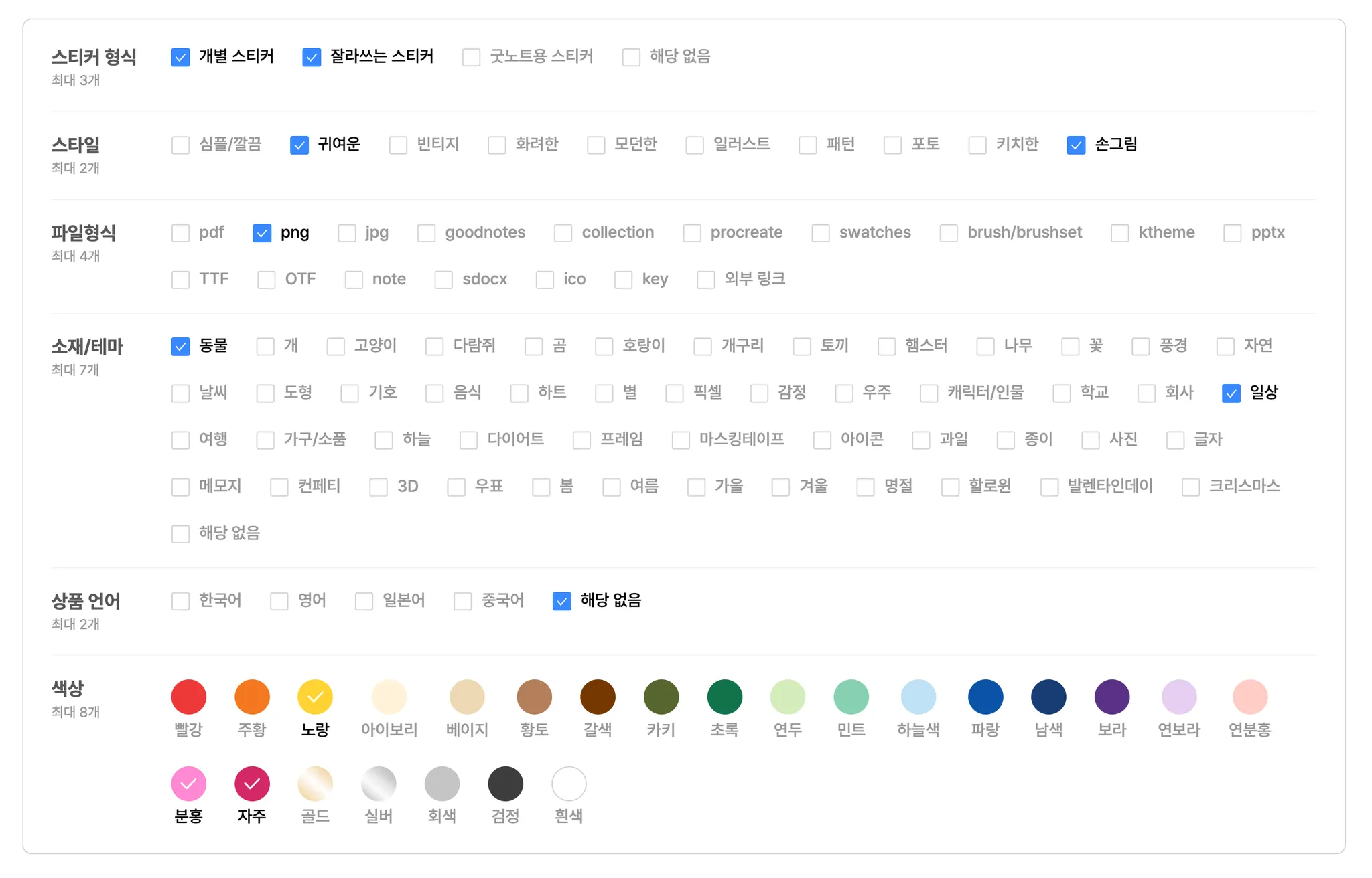 작품과 관련없는 내용을 과다하게 선택할 경우 반려처리 될 수 있으므로 최대 개수를 고려해 신중히 선택해주세요.
