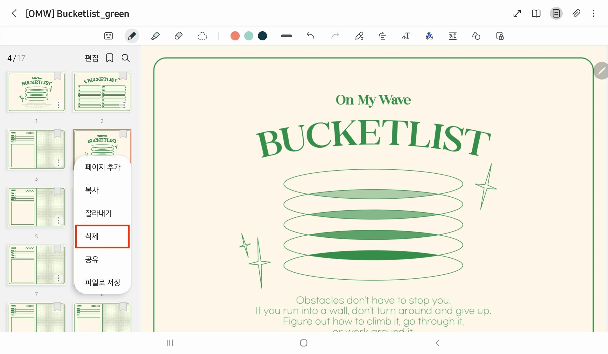 01. 이동하고 싶은 페이지를 선택 → 클릭한 상태로 이동 → 놓기