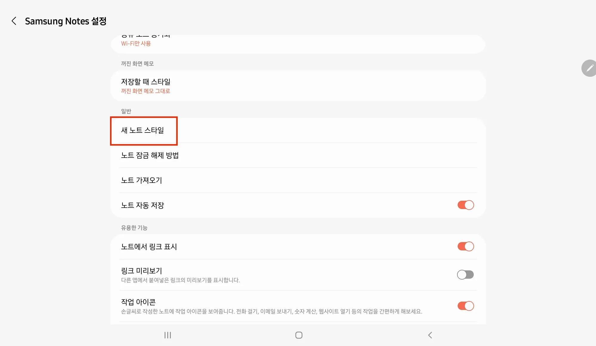 02. 삼성노트 설정 → [새 노트 스타일] 클릭