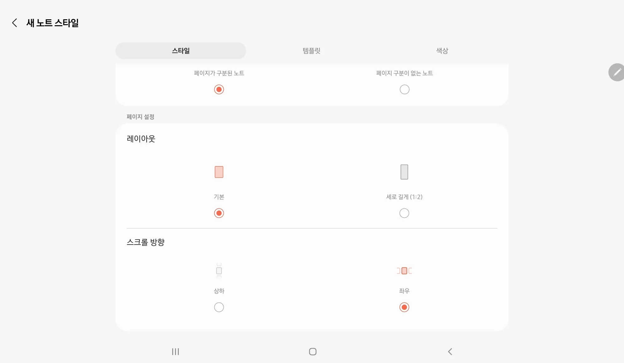 삼성노트 사용 전, 아래와 같이 세팅하면 속지를 사용하기 더욱 편리해요.
