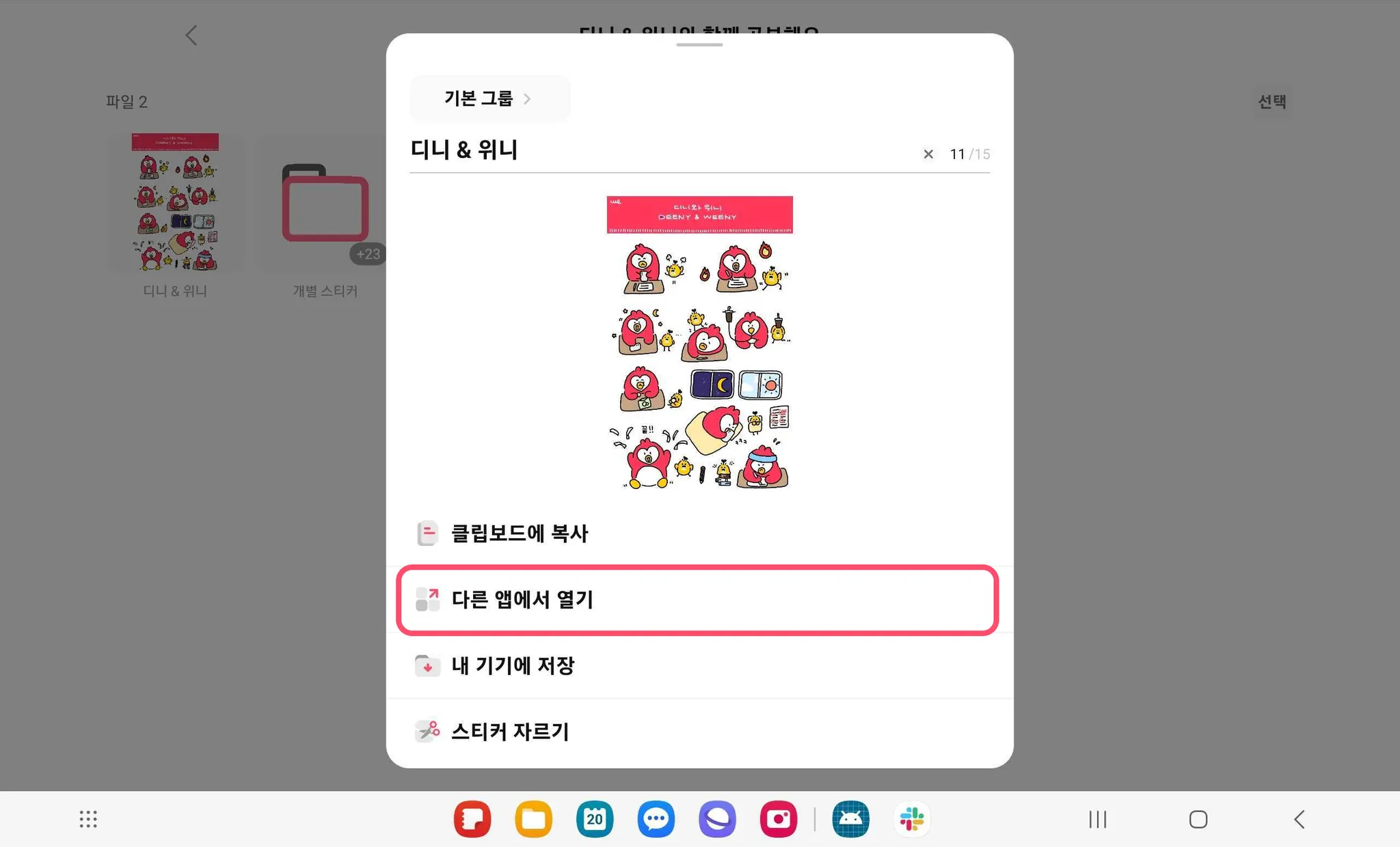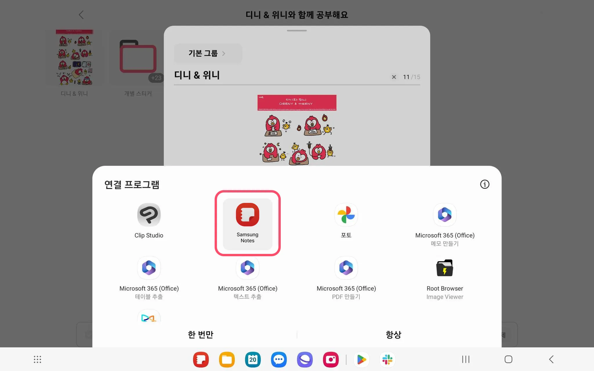 예시에서 사용한 삼성노트의 경우, 세번째 [Samsung Notes]를 선택하면 파일을 바로 불러올 수 있어요.