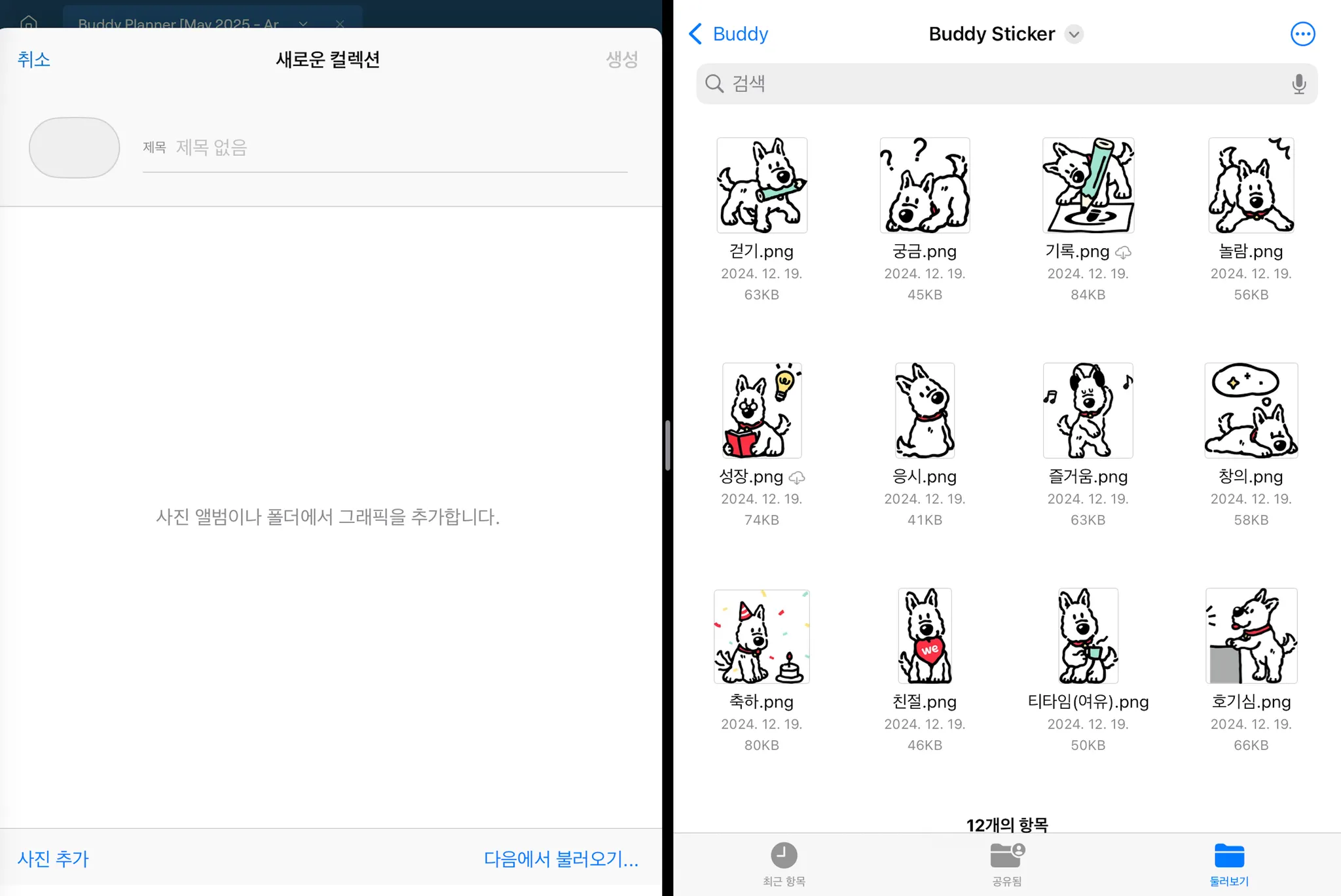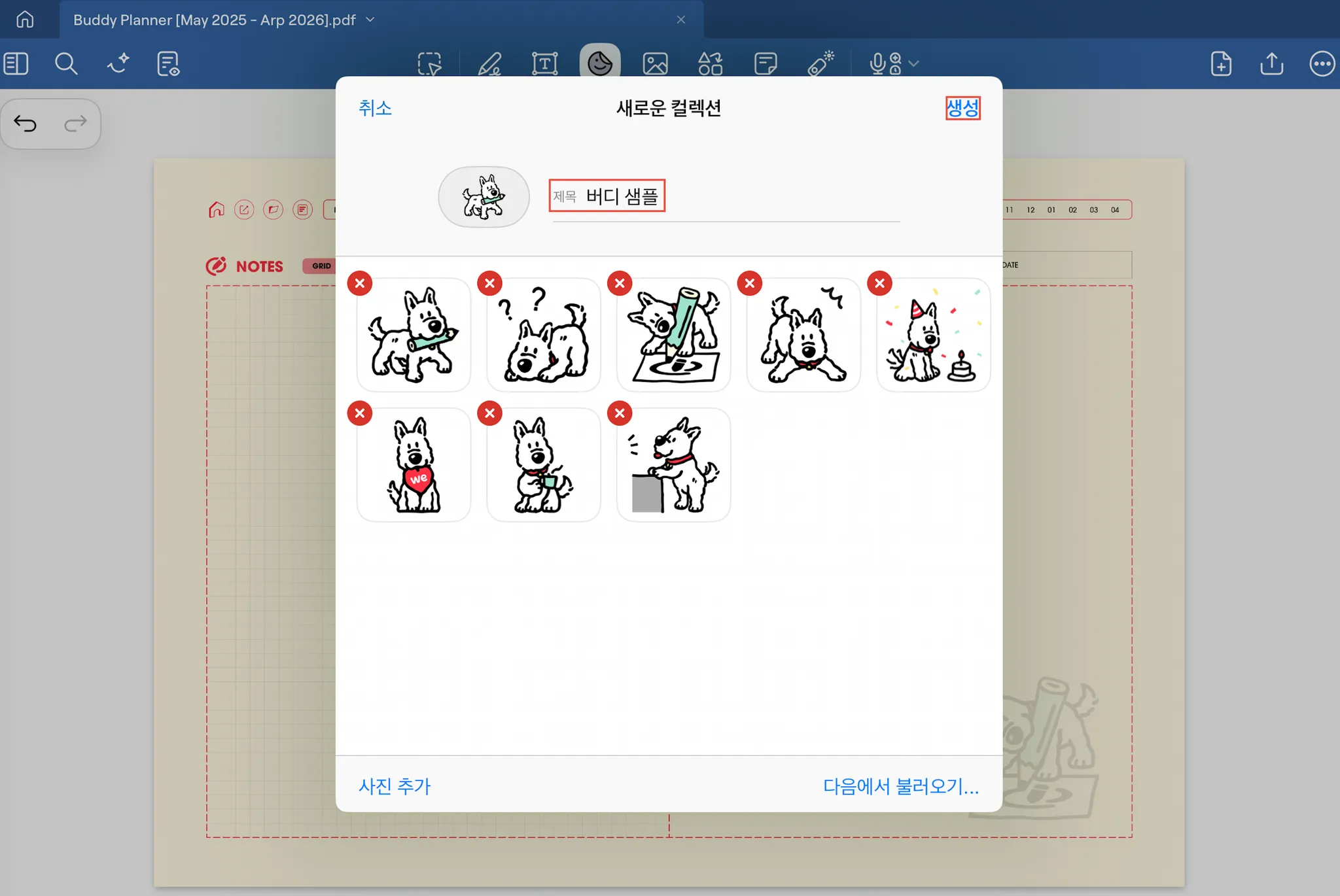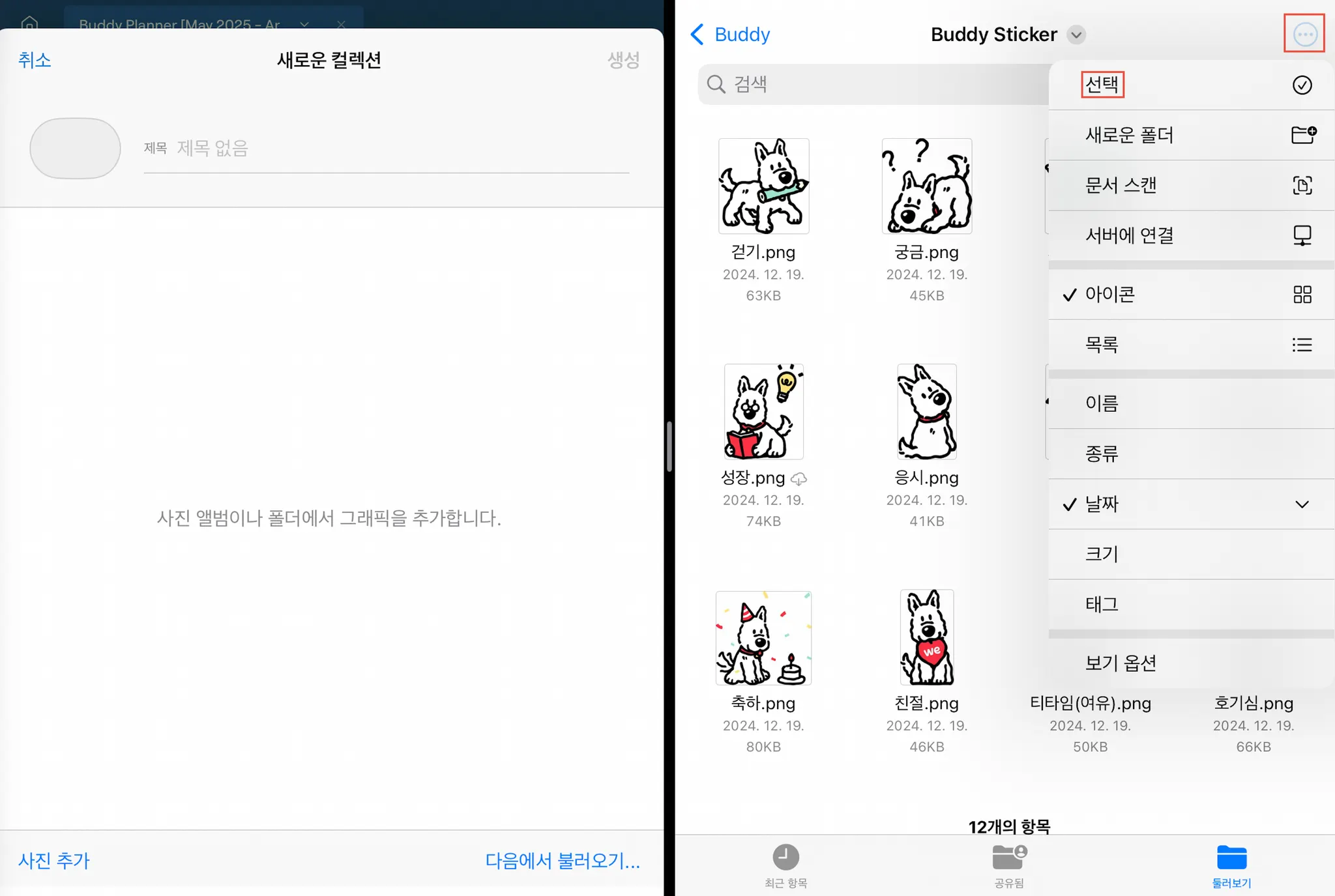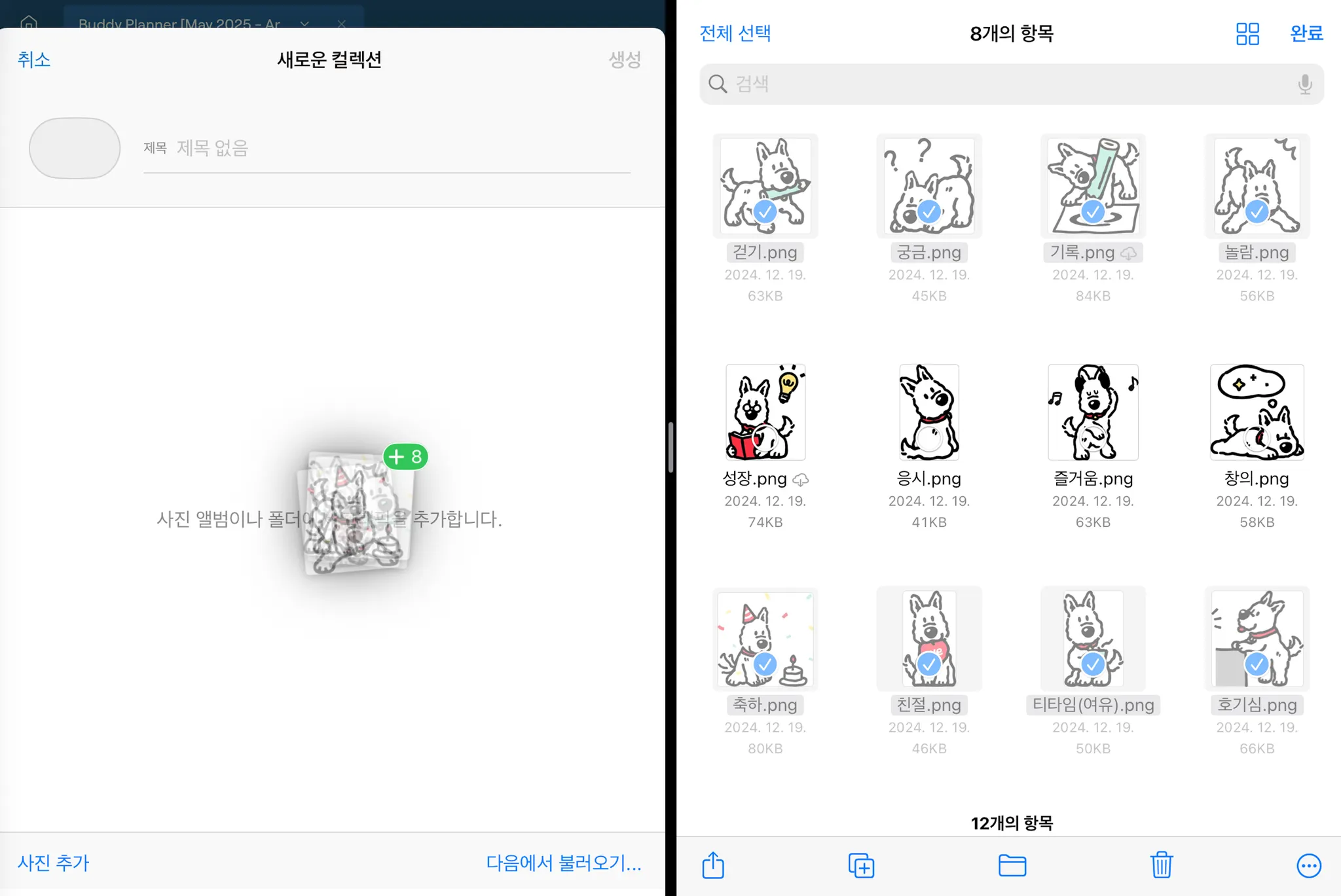 03. 스티커 선택 후 콜랙션으로 드래그 앤 드롭