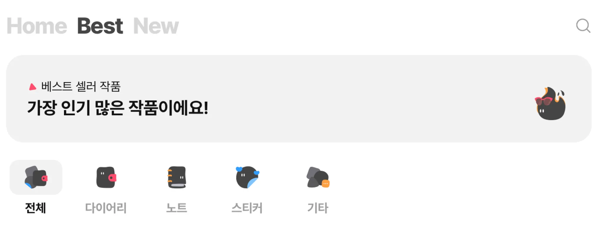 1. 카테고리별로 위버딩의 모든 디지털 작품을 둘러볼 수 있어요.