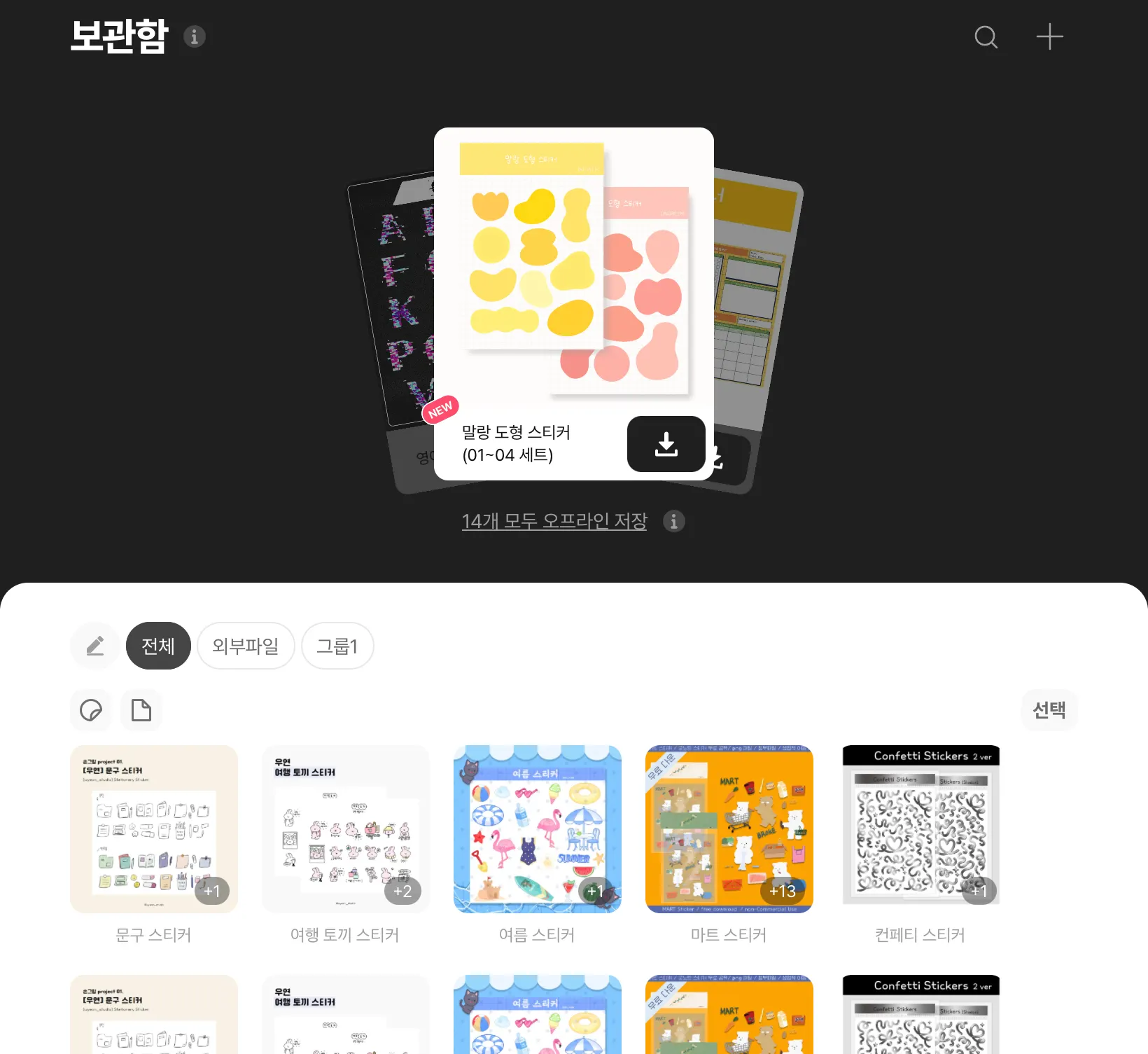 4. 저장이 끝나면 토스트 메시지 버튼을 통해 [보관함]으로 이동할 수 있어요. 저장한 작품은 [전체] 그룹에서 확인할 수 있어요.