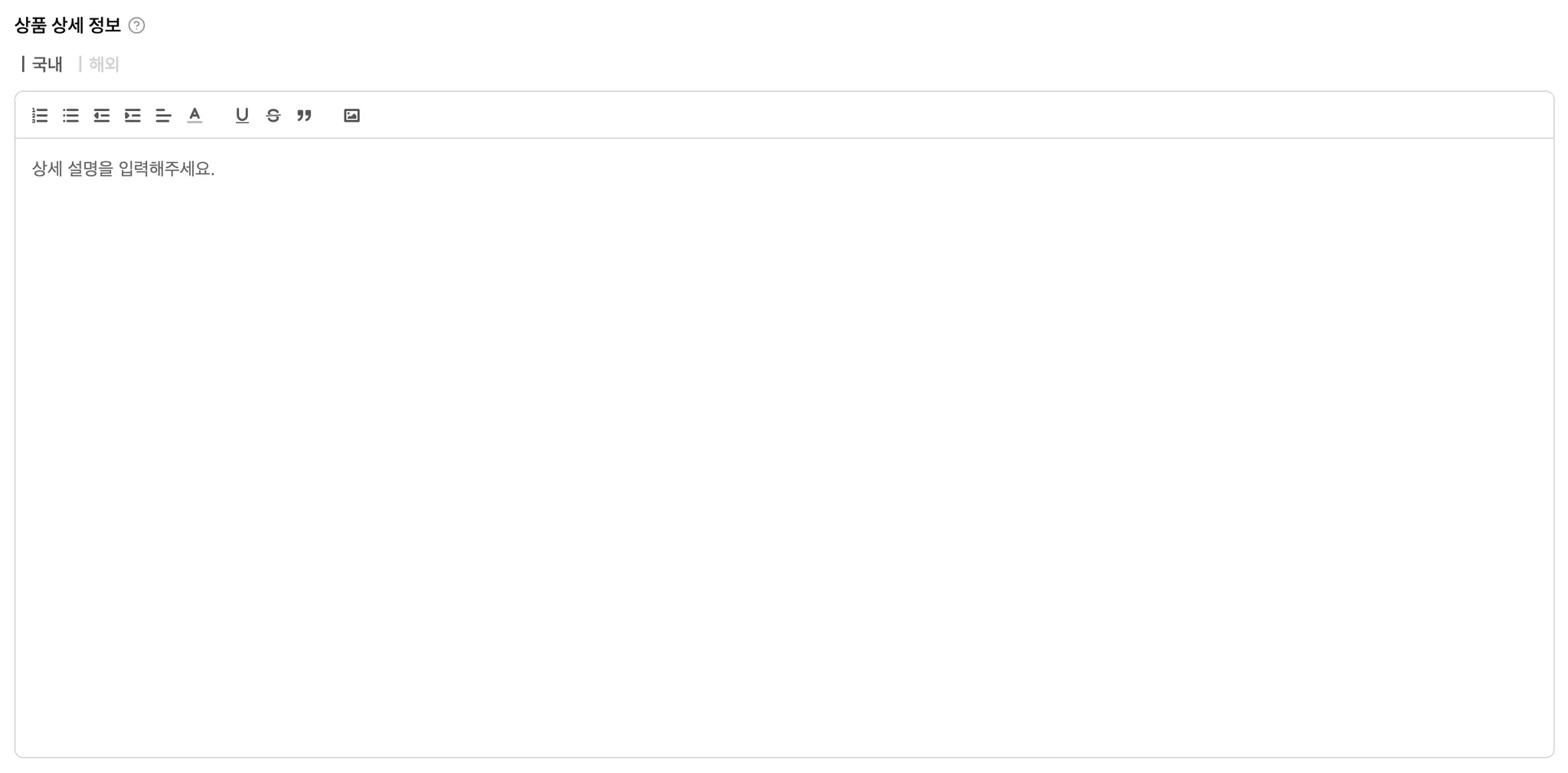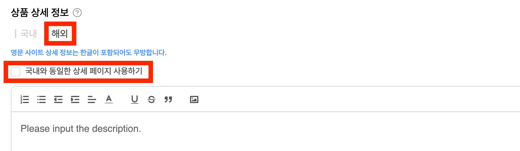 동일하게 적용하기 원하는 경우, [국내와 동일한 상세 페이지 사용하기]에 체크합니다.