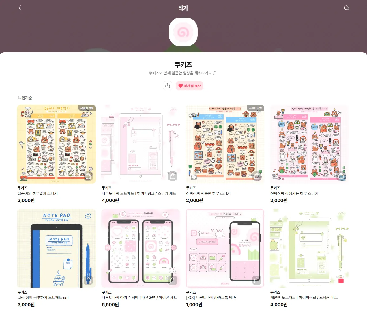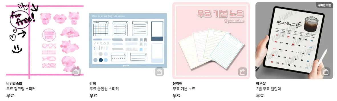 위버딩 작가님들의 작품이 굿노트 마켓에 입점된 모습