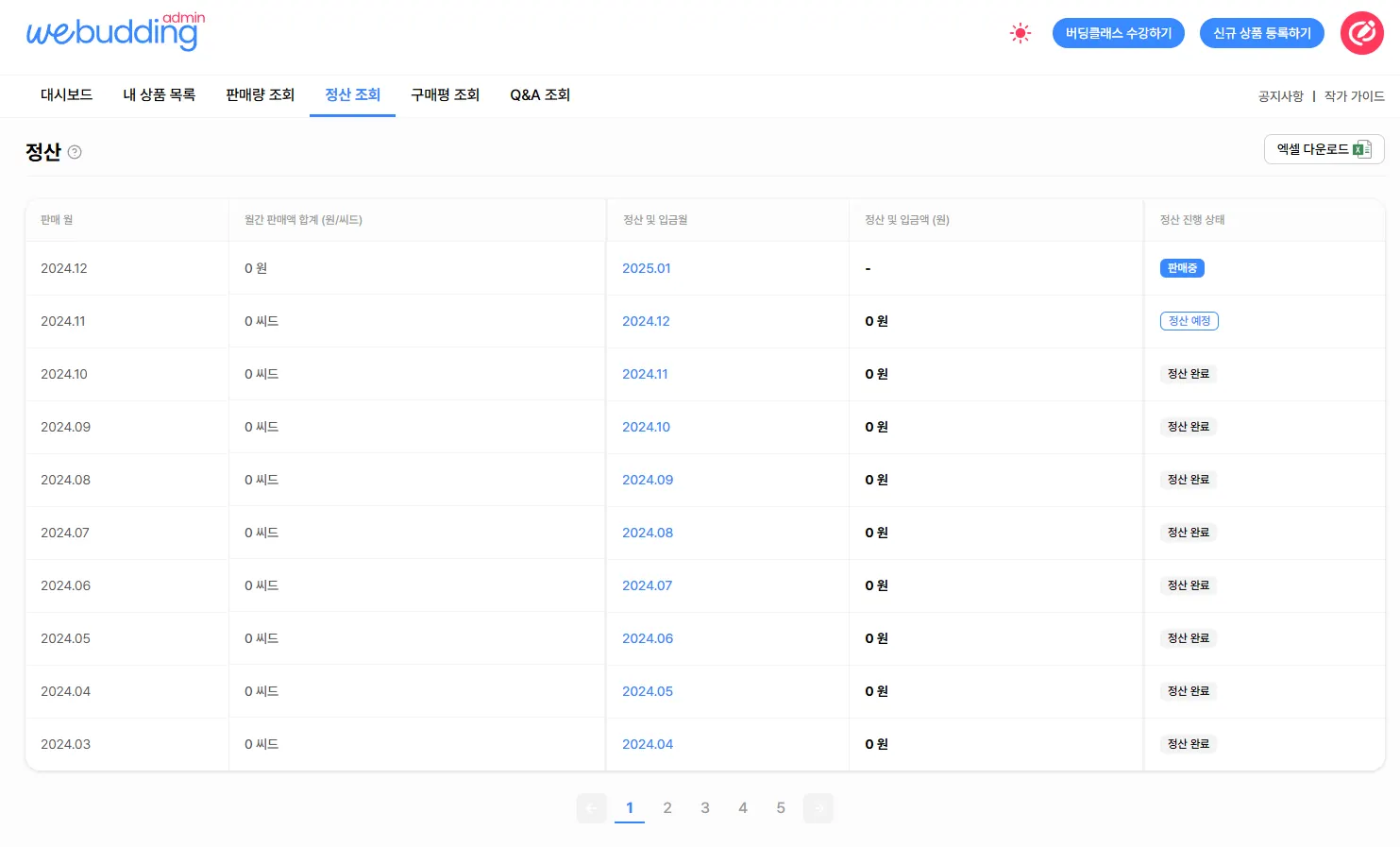 직품 등록 및 수정, 정산 정보, 공지사항 등 작가 활동과 관련된 정보는 모두 작가 어드민에서 확인하실 수 있어요!