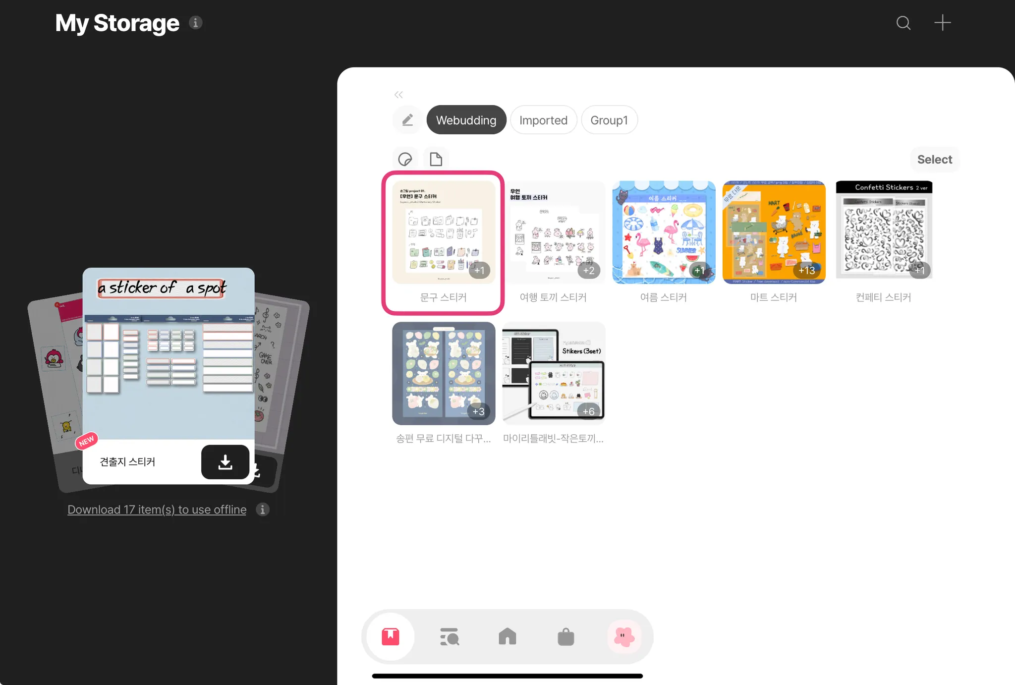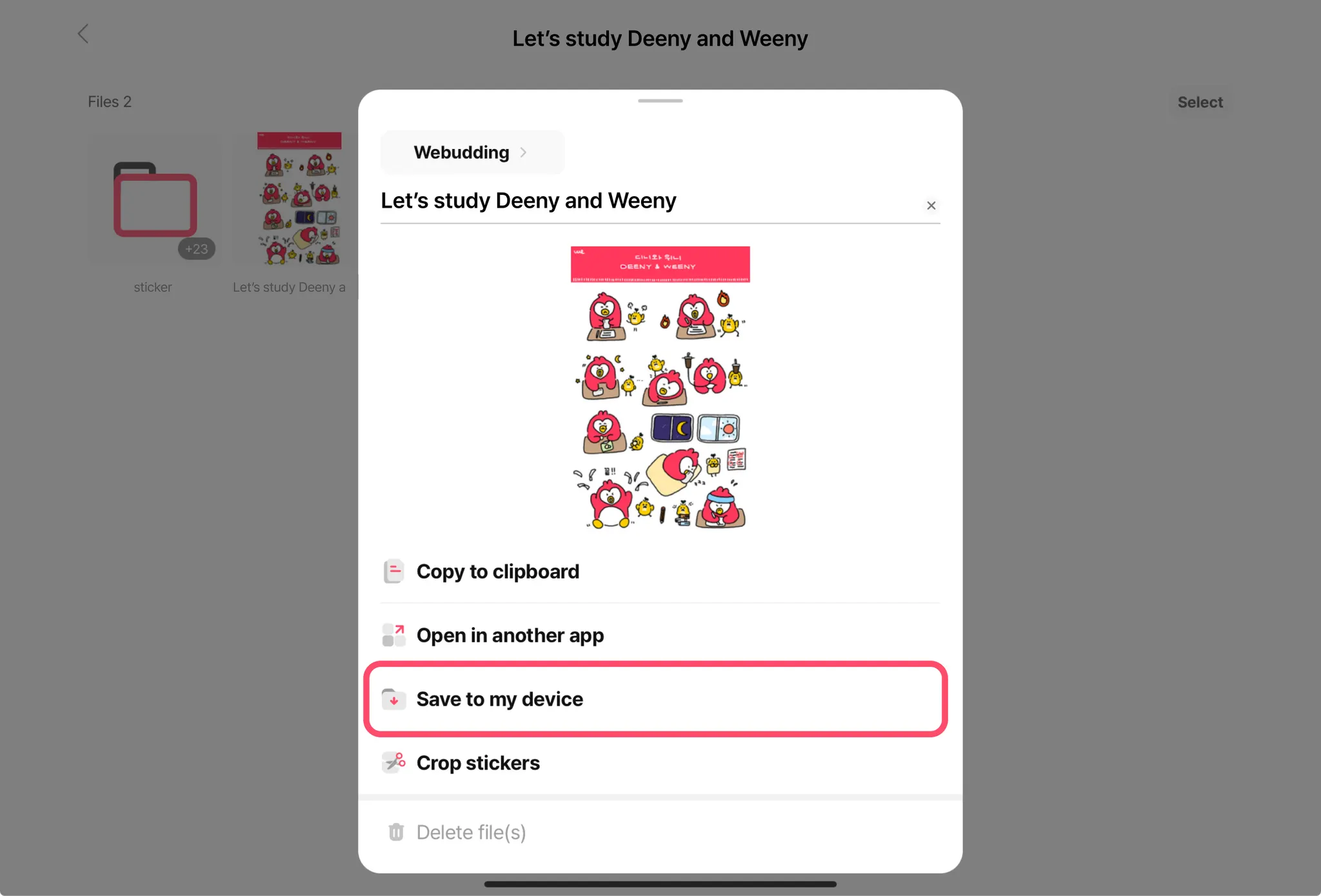 The same applies to stickers: access the folder by clicking the folder, crop the stickers using our crop feature, then drag & drop into your desired app