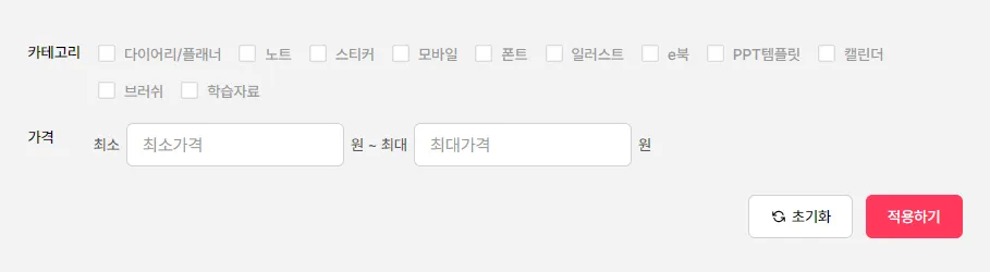 내가 원하는 카테고리와 가격대를 설정하고, '적용하기'를 누르면 끝!
