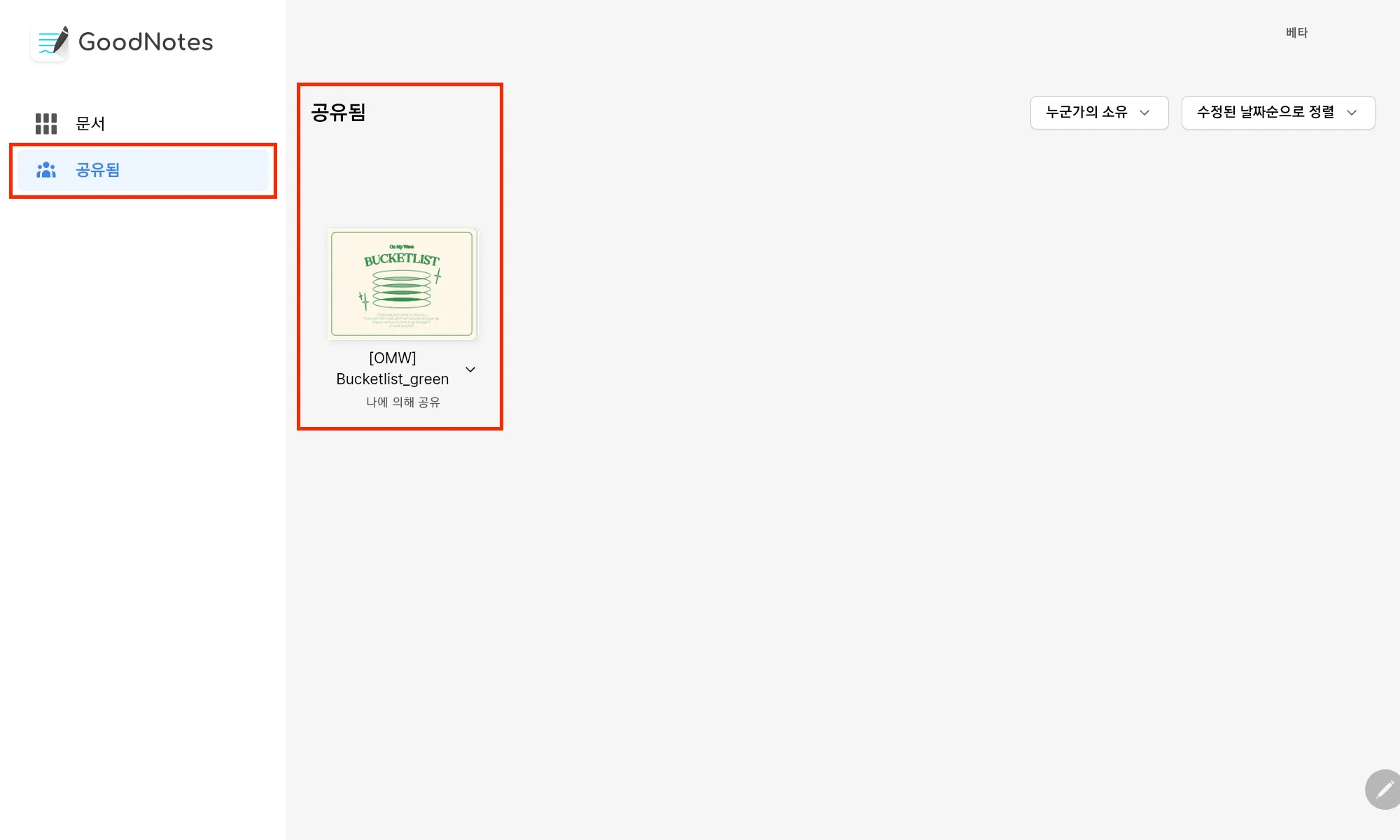 03. 굿노트 홈 화면에서 공유된 파일 확인