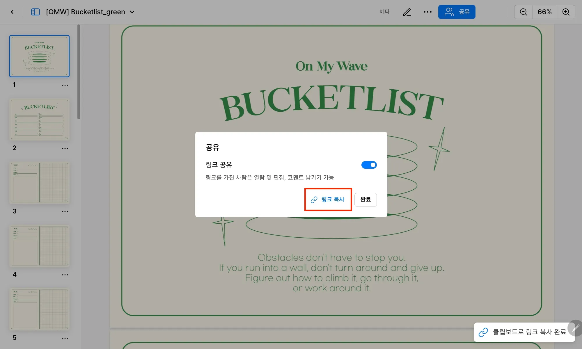 02. [링크 공유] 클릭 활성화 → 링크 복사 → 링크 공유
