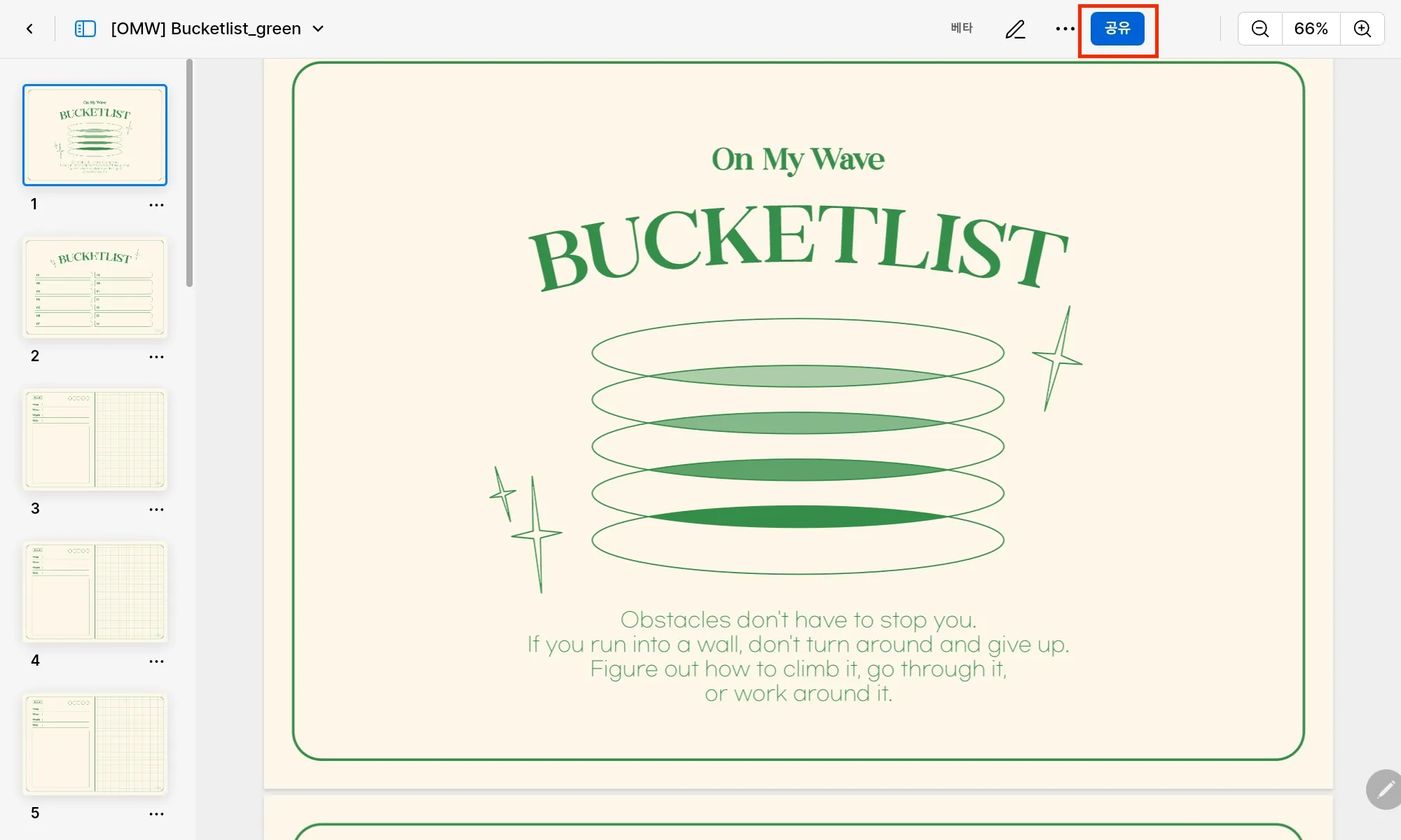 01. 공유하고자 하는 속지 내 오른쪽 상단 [공유] 클릭